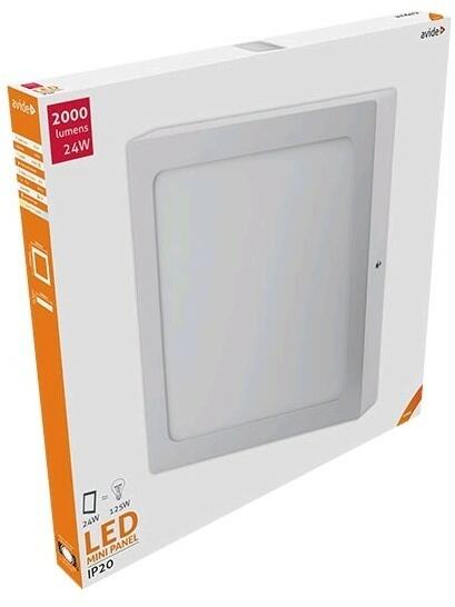 Avide LED lámpa mennyezeti, négyzet falon kívüli Szabályozható Színhőmérséklet: Nem Garancia: 3 év Szín: Fehér Anyaga: Alumínium Várható élettartam: 25 000 óra Foglalat: nincs Teljesítmény: 24 W Hagyományos watt megfelelőség: 125 W Feszültség: 220-240 V Működési hőmérséklet: -20 - +40°C IP Védettség: IP20 Mérete:: 300 x 300 mm Magasság: 31,5 mm Színhőmérsékl