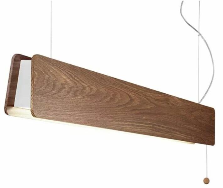 Sötétbarna tölgyfából készült függesztett lámpa, fém vázzal és húzókapcsolóval. 3000K-es, meleg fehér fényű fénycsővel szerelve érkezik. A lámpa feje billenthető. Színvisszaadási képessége 80%. Specifikációk:Gyártó: Nowodvorski Cikkszám:: TL-7522 Foglalat: 1 x T8 Méret (ma x sz x mé): 1500 x 980 x 80 mm IP-védettség: IP20 Színhőmérséklet: 3000 K Sugárzási