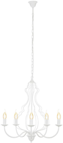 Fehér színű függesztett lámpa, klasszikus és mediterrán stílusú otthonokba. A lámpa belógása a láncszemek kivételével rövidíthető. A fényforrás nem tartozéka a csomagolásnak. Gyertyaláng formájú izzóval mutat legjobban. Specifikációk:Gyártó: Nowodvorski Cikkszám:: TL-6330 Foglalat: 5 x E14 Méret (ma x sz x mé): 1400 x 600 x 0 mm IP-védettség: IP20 Tápfeszültsé