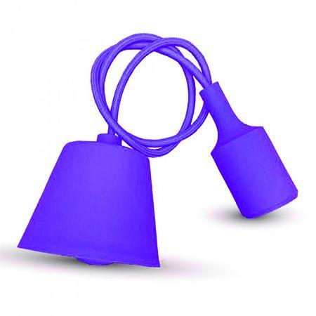 V-tac E27-es szilikon függőlámpa (minimal lámpatest) - lila Színes, minimál függesztékek E27-es foglalattal. Nagyon olcsó, ám igen látványos világítási forma, különösen jól mutat a nagy méretű gömb (Globe) E27-es LED lámpákkal, vagy a filament LED lámpákkal. 1 méter szövettel bevont vezeték, műanyag díszkupak, szilikon gumival bevont E27-es foglalat. A rögzítéshez