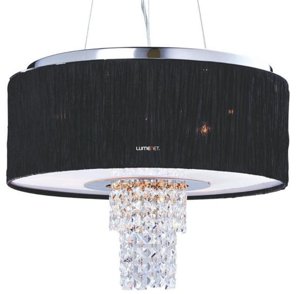 Elegáns , mégis modern kivitelű függeszték króm színű fém vázzal, fekete színű texil búrával és kristály dekorral.
