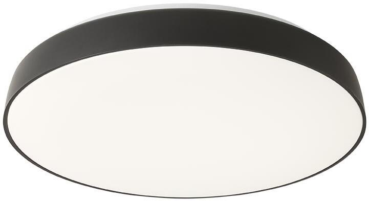 Matt fekete színre festett fém mennyezeti lámpa fehér opálos műanyag búrával, beépített LED fényforrással.