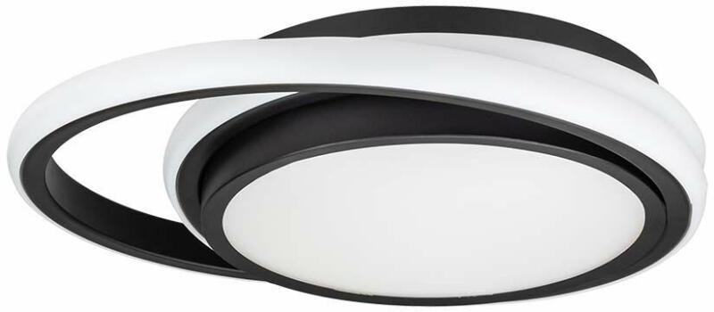 Fekete keretes, fehér színű műanyag, ABS mennyezeti lámpa 24W meleg fehér fényű beépített LED fényforrással.