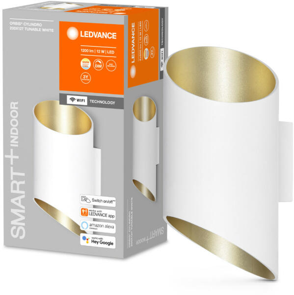 CYLINDRO dimmelhető LED-es fali lámpa. Ideális világítás nappalikhoz, lépcsőkhöz stb. Lehetőség a fényerő és a színhőmérséklet módosítására. Állítható színhőmérséklet – 3000K és 6500K között. Könnyű távirányítás vagy automatizálás – csak csatlakoztassa a lámpát közvetlenül a Wi-Fi routerhez, és nincs szükség külső elosztóra. A LEDVANCE SMART +