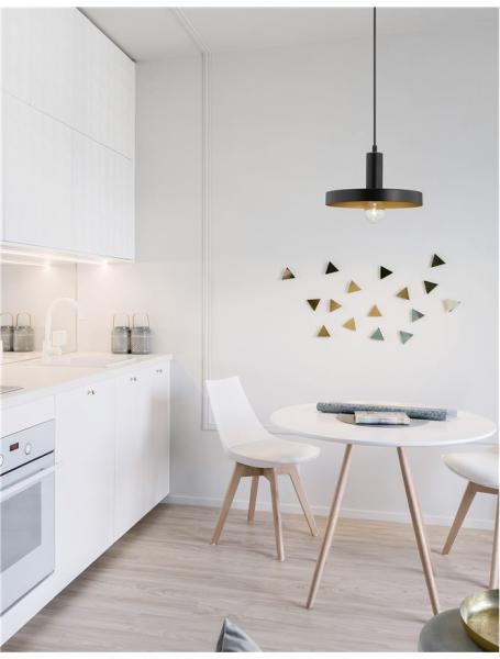 Fekete fém búrás függeszték fekete PVC vezetékkel. A búra belül arany színű. Magasság adatnál a maximális belógást adtuk meg, mely a vezeték rövidítésével csökkenthető. Dekor fényforrást ajánlunk hozzá, mely kiemeli a lámpa hangulatát. LED fényforrással működtethető, melyet a csomagolás nem tartalmaz. Specifikációk:Gyártó: Nova Luce Cikkszám:: NL-9417053 Fogl