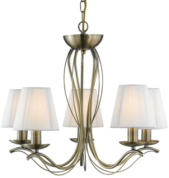Klasszikus csillár az Andrettiti termékcsaládból . Antikolt réz szerelvények és test, krémszínű, álselyem lámpabúrák (13x12cm), 5 fényforrás. Energiatakarékos izzók. Magasság: 40 cmÁtmérő: 51 cmHossz: max. 100 cmTeljesítmény: 5 x 40 WFoglalat: E14