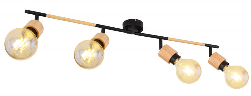 Spotlámpa fém matt fekete váz, fa betéttel kombinálva. HxSZxM:800x80x170, exkl. 4xE27 40W 230V