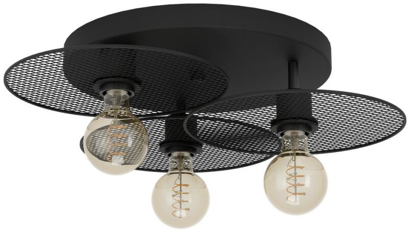 Az IKESTON mennyezeti lámpa kör alakú fekete fémtesttel rendelkezik, három kerek háló elemmel. A dizájn modern ipari megjelenést kölcsönöznek a terméknek. A mennyezeti lámpa szinte minden belsőépítészeti stílust kiegészít, jellegzetes világítási megoldást. .