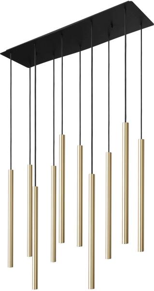 "Nowodvorski Laser függeszték modern, arany színű fém búrás lámpa, fekete vezetékkel. A búra magassága 49 cm, átmérője 2,5 cm. A mennyezeti konzol méretei: 20x78x2,2 cm. Állítható magasságú függeszték. Magasságánál a maximális belógást adtuk meg. A csomagolás a fényforrást nem tartalmazza. Milyen a lámpa fénye? A búra kialakítása miatt a lámpa fénye irányíto