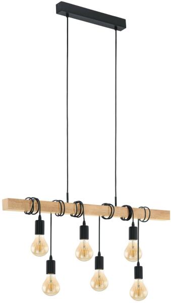 Ez a TOWNSHEND sorozatú függesztett lámpatest fekete acélból és barna fából készült. A reflektorhoz hat E27-es lámpa szükséges.