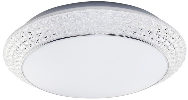 Króm színű fém vázas mennyezeti lámpa fehér színű akril búrával, kirstály dekorral, csillagos ég effektel.