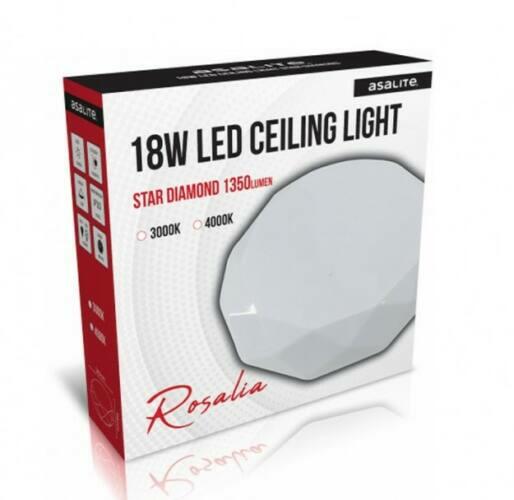 Asalite LED Mennyezeti Lámpa 4000K Gyemánt csillagos ROSALIA 18W Búra színeopálCikkszámASAL0190Dimmelhetőn emÉlettartam25 000 óraEnergiaosztályGFényáram1350 lumenFényhasznosítás75 lumen/wattFoglalatACFrekvencia50/60 HzGarancia2 évHagyományos watt megfelelősség90 WHálózatAC 170-265 VIP védettségIP 20Ki-Be kapcsolás száma15 000Méret345 x 94 mmSzínhőmérséklet4000 KSzínv