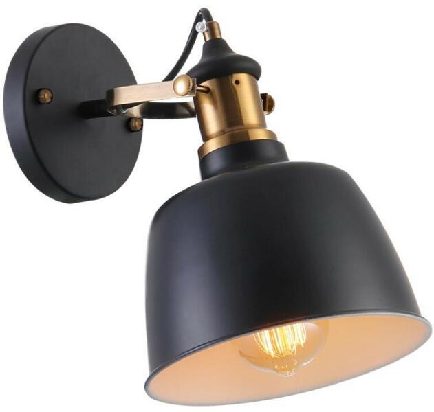 Fekete színű fém vázas falikar bronz dekorral, kívül fekete, belül fehér színű fém búrával.