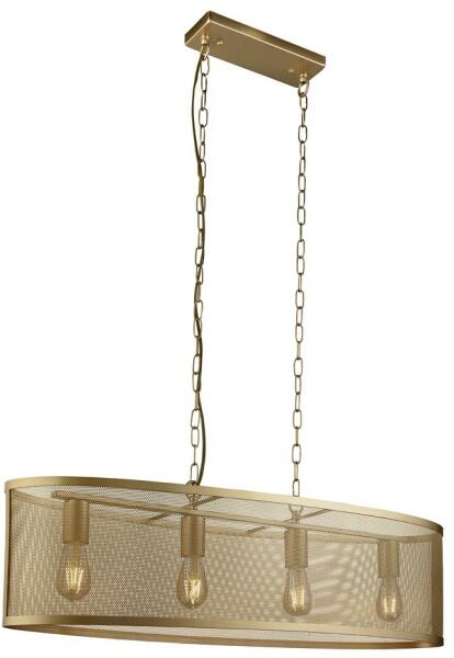 Műszaki adatok: E27 4x max. 60wattFényforrás tartozék: nemAnyag: fémSzín: matt aranyTeljes belógás: 150cmMagasság: 23cmSzélesség: 30cmHosszúság: 91cm Egyéb információk: Dimmelhető: Használható fényerő szabályzóval.