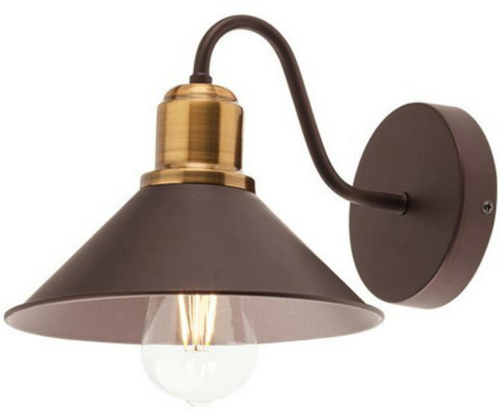 Matt barna színű fém falikar antik réz betéttel és fém ernyővel.