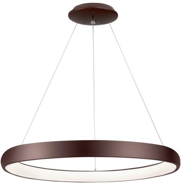 Kávébarna színű, modern stílusú függeszték. A lámpa színhőfoka 3000K, azaz meleg fehér fényű, beépített fényforrást tartalmaz, mely nem cserélhető. Maximális belógása 1200mm, mely a huzal szabályozásával rövidíthető. Fényerőszabályozható. Specifikációk:Gyártó: Nova Luce Cikkszám:: NL-8105609 Foglalat: 1 x Beépített LED Méret (ma x sz x mé): 1200 x 810 x 0