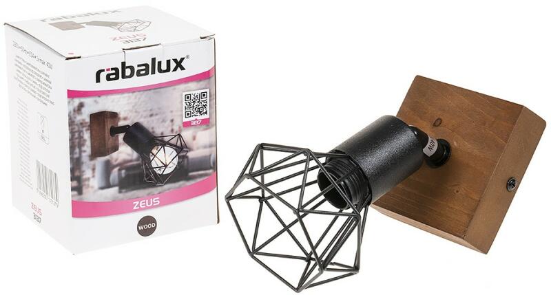 RÁBALUX Zeus, beltéri spotlámpa, E14, 1xMAX40W, fekete/tölgy (3137) Az indusztriális stílusban készült Zeus spotlámpát a lakás számos helyiségébe ajánljuk: felszerelhetjük a nappaliban, az étkezőben, a konyhában vagy éppen a hálószobában. A fémből és fából készült lámpa szögletes, tölgy dísztalp segítségével rögzíthető a falra. A jellegzetes formájú, rács
