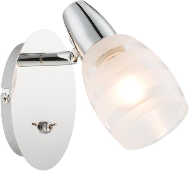Fénylő megjelenés amit a ROY lámpák képviselnek. A falikar váza fényes króm. Az üveg búrán a víztiszta és homok fúvott dekoráció csíkokat rajzol, ettől lesz egyedi a kinézete. Nyakrészén csuklópont van, mely lehetővé teszi a búra állíthatóságát! A falikaron egy billenő kapcsoló található. Foglalata 1xE14, , 40W, Javasoljuk takarékos fogyasztású LED fényforrá