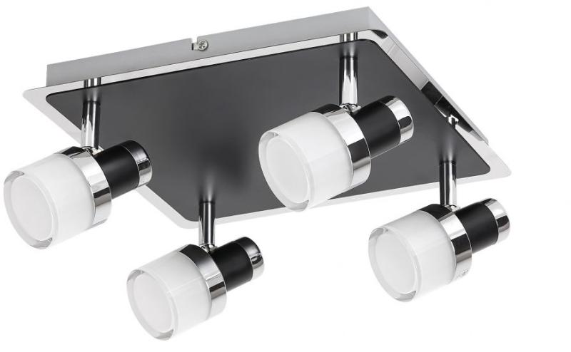Rábalux 5024 Harold LED Fürdőszobai lámpa Fekete 4000K, 1600 lumen, 20 W A Harold négyes fürdőszobai mennyezeti lámpa króm-fekete-opál színkombinációjával elegáns és meghatározó darabja lehet modern fürdőszobánk berendezésének. A lekerekített sarkú, szögletes, dupla dísztalp külön említést érdemel. A fémből és műanyagból készült modellt a fürdőszoba azon po