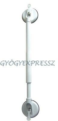 öntapadós fürdőszoba kapaszkodó bármely sima felületre felszerelhető könnyen felrakható és áthelyezhető a fejeken található kar lenyomásával vákumot képez a gumiharangban és biztonságosan feltapad a felületre 70 kg-ig terhelhető (nem a beteg súlya, hanem a húzóteher nagysága) állítható hossz: 44-57 cm között súly: 0,8 kg csúszásmentes kapaszkodó felület fehér