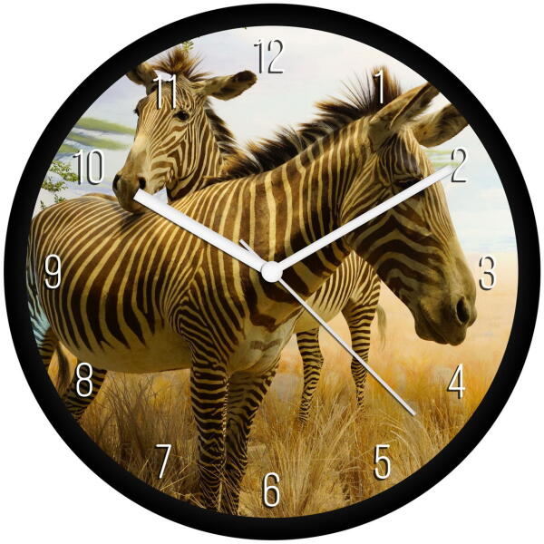 30 cm átmérőjű műanyag falióra, átlátszó üvegburávalcsendes, folyamatosan járó óraszerkezetnyomdai minőségben nyomtatott óralapszínes fém mutatókkartondoboz csomagolásAz óra 1 db AA ceruzaelemmel működik. A csomag elemet nem tartalmaz!Az órát összeszerelve, működésre készen szállítjuk, neked csak a helyére kell akasztanod és gyönyörködni benne!