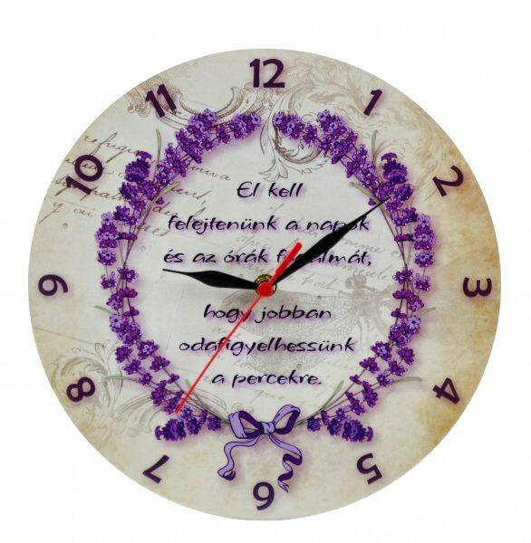Falióra kerek El kell felejtenünk... levendulás 28cm 02578 - Óra, falióra 1 db AA elemmel működik, mely nem tartozék. Befoglaló méretek 30x4x30 cmAnyaga fa