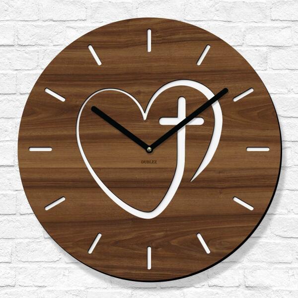 Hozza otthonába a hit és szeretet szimbólumát a „Kereszt a szívben faliórával. Ez a hívőknek készült fa óra csendes, ketyegésmentes mechanizmusával ötvözi a praktikumot és a keresztény üzenetet. Kiemelkedő dekoráció lehet a nappaliban, hálószobában, konyhában vagy folyosón. Tökéletes ajándék szülőknek, nagyszülőknek vagy barátoknak, akik értékelik e különl