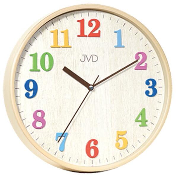 A krémszínűf alióra színes számokkal nem csak gyerekszobába alkalmas. Az óra műanyag tokkal és jól olvasható számlapjával rendelkezik. Nem fut csendesen. A 29,5 cm átmérőjű kerek órát kvarc (elemes) óramű működteti, amely egyenletes futású. Műszaki paraméterek: Méret: 29,5 cm Kijelző típusa: analóg Anyag: műanyag Hajtómű: Quartz Futás: sima Gyártó: JVD