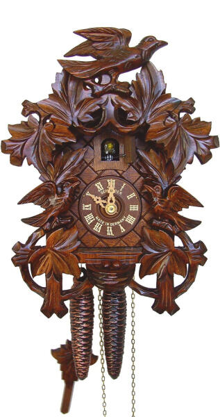 Anton Schneider 872/9 fekete erdei kézzel faragott 1 napos kakukkos óra. A Fekete-erdő Óraszövetsége (VdS) eredetiségi tanúsítvánnyal. Az eredeti fekete-erdei kakukkos óra minden egyes részét kézzel faragták és festették, akárcsak 150 évvel ezelőtt. minden egész és fél órában kakukkol manuálisan elnémítható 1.4 kg