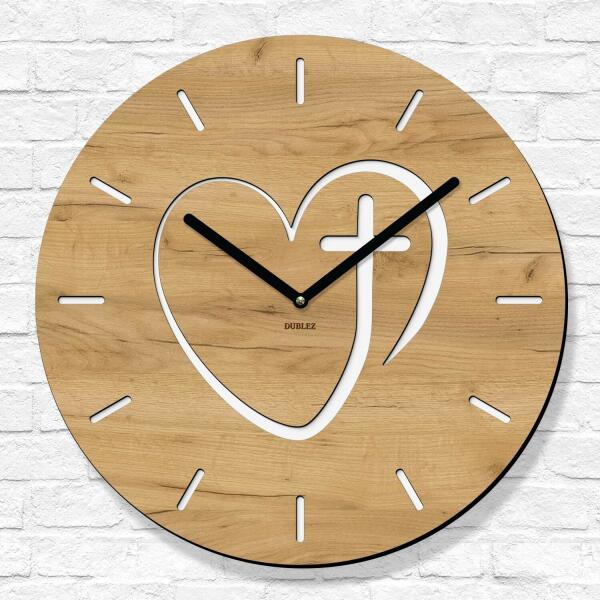 Hozza otthonába a hit és szeretet szimbólumát a „Kereszt a szívben faliórával. Ez a hívőknek készült fa óra csendes, ketyegésmentes mechanizmusával ötvözi a praktikumot és a keresztény üzenetet. Kiemelkedő dekoráció lehet a nappaliban, hálószobában, konyhában vagy folyosón. Tökéletes ajándék szülőknek, nagyszülőknek vagy barátoknak, akik értékelik e különl