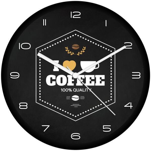 30 cm átmérőjű műanyag falióra, átlátszó üvegburávalcsendes, folyamatosan járó óraszerkezetnyomdai minőségben nyomtatott óralapszínes fém mutatókkartondoboz csomagolásAz óra 1 db AA ceruzaelemmel működik. A csomag elemet nem tartalmaz!Az órát összeszerelve, működésre készen szállítjuk, neked csak a helyére kell akasztanod és gyönyörködni benne!