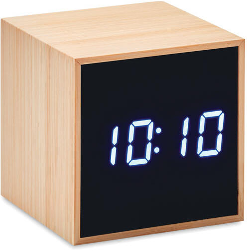 LED ébresztőóra bambusz házzal Fehér LED kijelzős, hőmérős ébresztőóra bambusz borítással. Villásdugós csatlakozóval szállítjuk. Az Egyesült Királyságban való használatra nem alkalmas. A bambusz természetes anyag, termékenként szín- és méretbeli eltérések jelentkezhetnek, ami befolyásolhatja a dekoráció végső eredményét.
