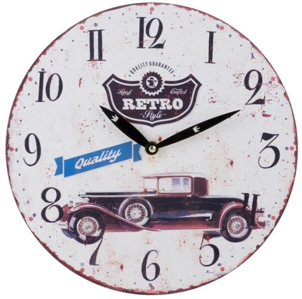 Retro nosztalgia autós műanyag falióra! Átmérő: 29cm 1db AA elemről működik (nem tartozék)