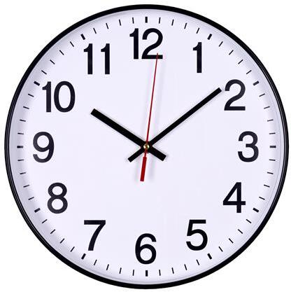 Műanyag falióra -kerek fehér számlap -műanyag előlap -modern design, arab számok -fekete mutatók, piros másodperc mutató -1 db AA elemmel működik -átmérő: 34 cm -vastagság: 4 cm -szín: fehér