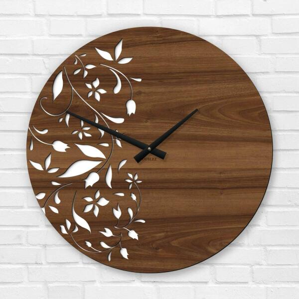 Luxus falióra, amely alkalmas a konyhába vagy a nappaliba, ahol az egész szoba ékköve lesz. A faliórát a provence-i stílus ihlette. Az óra egyik fele precízen kivágott virágokkal van díszítve, amely tökéletesen kiegészíti az óra másik felének minimalista stílusát. Biztosak vagyunk benne, hogy a fa óránkba azonnal beleszeret, és minden térben elegáns díszítőelemként