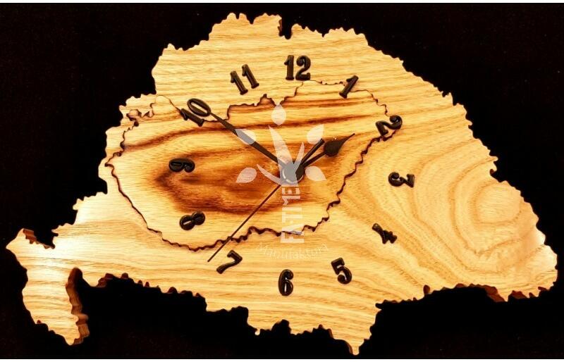 Ez a csodaszép óra kőrisfából készült. Az internetre való feltöltése a trianoni diktátum 100. évfordulója alkalmából történt. A színkontrasztot égetéssel értük el. Prémium minőség. UTS német szerkezettel szállítjuk. 2 év teljes garanciát adunk az órához!. Méret: 33x21x4 cm www. fajandekok. hu www. fa-time. hu