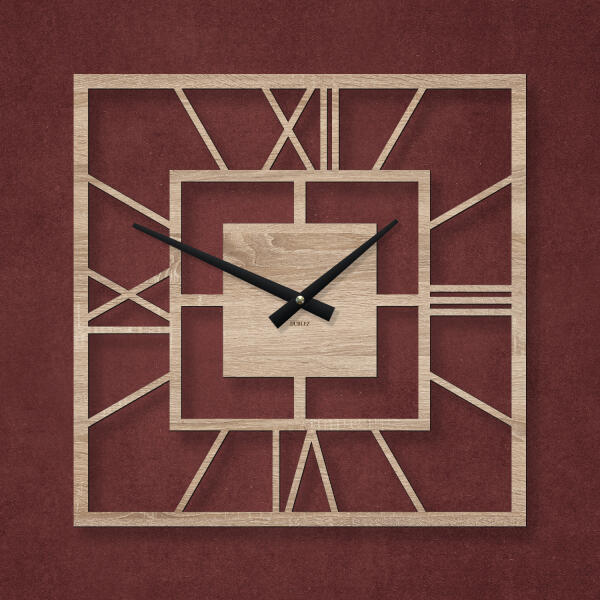 A szögletes falióra tökéletesen illik a nappaliba, ahol egyedi fa dekorációvá válik. A csendes óraszerkezetnek köszönhetően nem fogja Önt zavarni az óra ketyegése. Az óra egyszerű, de markáns tervezése garantáltan minden belső tért feldob. A különböző minták széles választékának köszönhetően tökéletesen összehangolhatja dizájnos óráinkat nappalija stílusáv