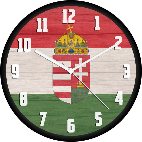 30 cm átmérőjű műanyag falióra, átlátszó üvegburávalcsendes, folyamatosan járó óraszerkezetnyomdai minőségben nyomtatott óralapszínes fém mutatókkartondoboz csomagolásAz óra 1 db AA ceruzaelemmel működik. A csomag elemet nem tartalmaz!Az órát összeszerelve, működésre készen szállítjuk, neked csak a helyére kell akasztanod és gyönyörködni benne!