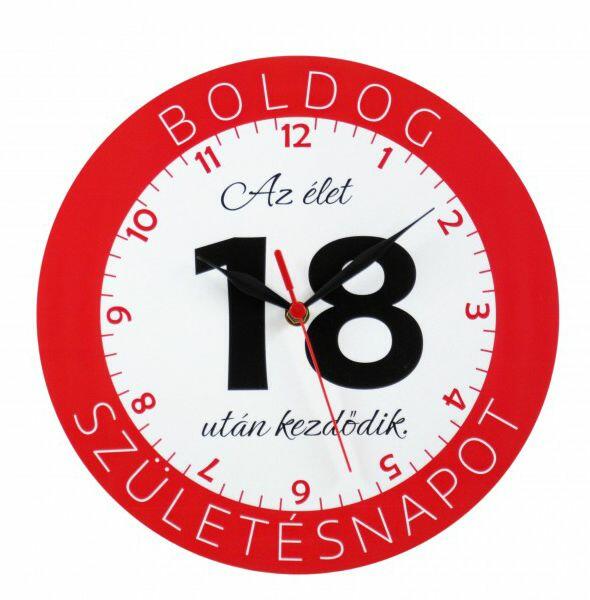 Falióra kerek 18 Boldog születésnapot 28cm 02601 - Óra, falióra 1 db AA elemmel működik, mely nem tartozék. Befoglaló méretek 30x4x30 cmAnyaga fa