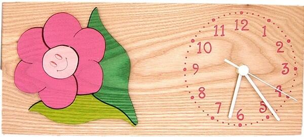 Kőrisfából készült gyermek óra. 2 csavar segítségével a falra rögzíthető. Méretei: 16 cm széles, 34 cm magas Elemmel, német óraszerkezettel szállítjuk.
