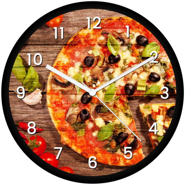 30 cm átmérőjű műanyag falióra, átlátszó üvegburávalcsendes, folyamatosan járó óraszerkezetnyomdai minőségben nyomtatott óralapszínes fém mutatókkartondoboz csomagolásAz óra 1 db AA ceruzaelemmel működik. A csomag elemet nem tartalmaz!Az órát összeszerelve, működésre készen szállítjuk, neked csak a helyére kell akasztanod és gyönyörködni benne!