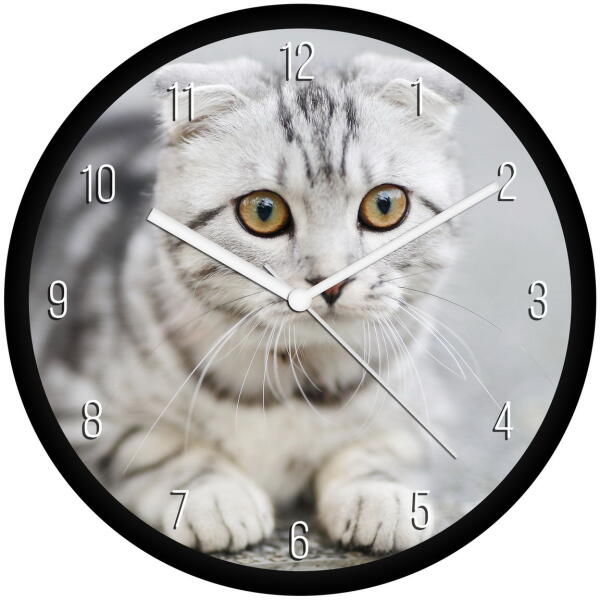 30 cm átmérőjű műanyag falióra, átlátszó üvegburávalcsendes, folyamatosan járó óraszerkezetnyomdai minőségben nyomtatott óralapszínes fém mutatókkartondoboz csomagolásAz óra 1 db AA ceruzaelemmel működik. A csomag elemet nem tartalmaz!Az órát összeszerelve, működésre készen szállítjuk, neked csak a helyére kell akasztanod és gyönyörködni benne!