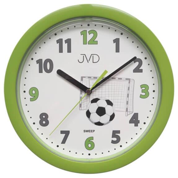 Falióra gyerekeknek zöld színben minden focista örömére szolgál. Az óra műanyag tokkal és jól olvasható számlappal rendelkezik. A 25 cm átmérőjű kerek órát egyenletes járású kvarc (elemes) óramű működteti. Nem csendes. Technikai paraméterek: Méret: 25 x 25 x 3 cm Kijelző típusa: analóg Anyag: műanyag Hajtómű: Quartz Futás: sima Gyártó: JVD