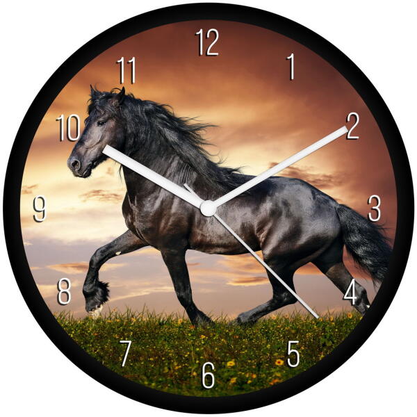 30 cm átmérőjű műanyag falióra, átlátszó üvegburávalcsendes, folyamatosan járó óraszerkezetnyomdai minőségben nyomtatott óralapszínes fém mutatókkartondoboz csomagolásAz óra 1 db AA ceruzaelemmel működik. A csomag elemet nem tartalmaz!Az órát összeszerelve, működésre készen szállítjuk, neked csak a helyére kell akasztanod és gyönyörködni benne!