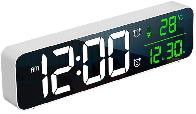 Tulajdonságok: - LED-es asztali óraként vagy falra szerelve is használható - Extra fényes HD LED kijelző, 5 lépésben állítható fényerővel, digitális kijelzéssel - Ébresztés funkció 40 beépített zenével, két beállítható ébresztéssel - Hőmérséklet kijelzés Celsius fokban vagy Fahrenheit-ben - Dátum kijelzés (hónap és nap) - 12 vagy 24 órás formátum - Egyszerű