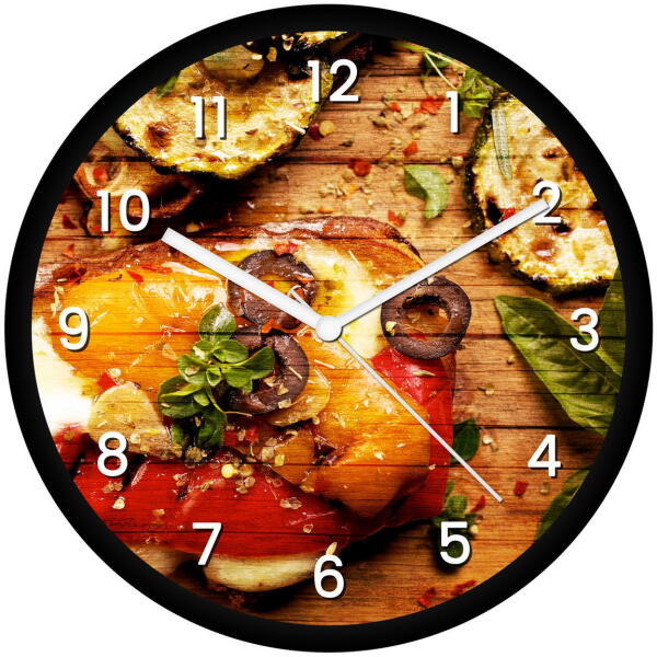 30 cm átmérőjű műanyag falióra, átlátszó üvegburávalcsendes, folyamatosan járó óraszerkezetnyomdai minőségben nyomtatott óralapszínes fém mutatókkartondoboz csomagolásAz óra 1 db AA ceruzaelemmel működik. A csomag elemet nem tartalmaz!Az órát összeszerelve, működésre készen szállítjuk, neked csak a helyére kell akasztanod és gyönyörködni benne!