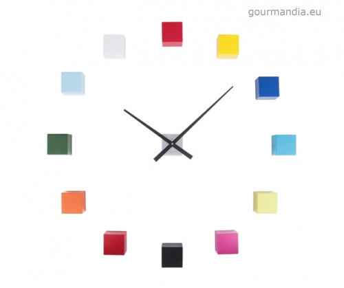 DIY Cubic falióra különlegességét az adja, hogy a színes kockákat tetszőlegesen helyezheti fel a falra, így egyedileg dekorálhat vele üres falfelületeket. Anyaga: műanyag, fém Méret: kockák mérete 6 x 6 x 6 cm, percmutató hossza: 24,5 cm, óramutató hossza: 16,5 cm Gyártó: Karlsson Szükséges elem: 1 db AA elem (csomag nem tartalmazza)