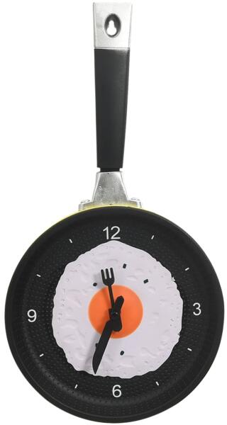 Ne hagyd ki ezt a mókás ükörtojásos, serpenyős dizájnnal ellátott faliórát! A falióra ABS-ből készült, így robusztus és könnyen tisztítható. Az óra világosan leolvasható számokat kapott, hogy könnyen és gyorsan megállapítható legyen rajta a pontos idő. Serpenyő alakjával, tükörtojást formázó számlapjával, valamint kés és villa mutatóival lakása tökéletes