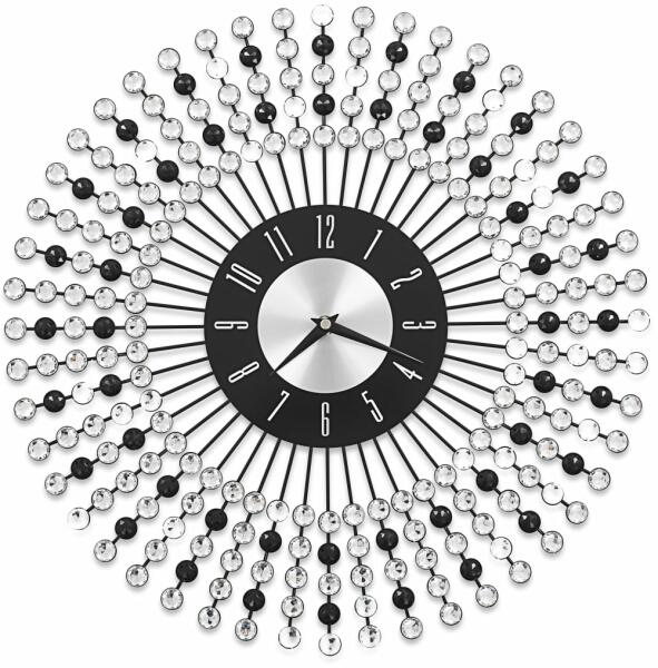 Tegye otthona központi díszévé lenyűgöző fém falióránkat! A ragyogó kristályberakással büszkélkedő falióra valóban csodálatos darab, és nagyszerű kiegészítője lesz otthonának. A fémből készült óra rendkívül erős és tartós. A kvarc mechanizmusnak köszönhetően az óra igen pontos. A nagy számlapnak és a tiszta számoknak köszönhetően az idő még nagy távo