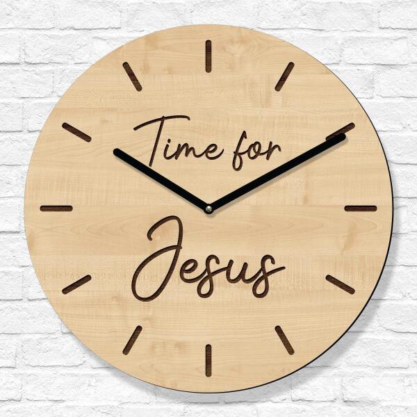 Fa falióra - Az Istennek szánt idő békét és hitet hoz a otthonába. Az egyszerű és elegáns dizájn precíz gravírozott idézettel emlékeztet arra, hogy minden pillanat ajándék. A fa falióra ötvözi a minőségi, nem ketyegő szerkezet praktikumát és a mély keresztény üzenetet. A fa órák nem csak stílusos kiegészítők, hanem a hit és szeretet szimbólumai is, amelyek minde